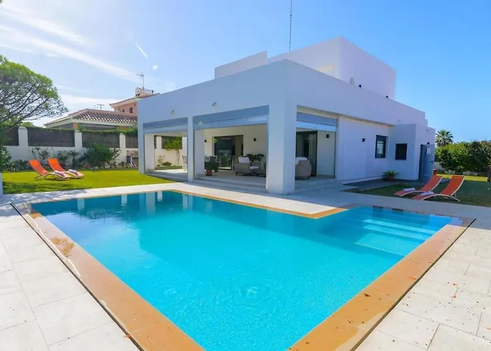 A Villa Monaco Conil De La Frontera By Ruralidays 2 km-re van a Torre del Puerco területétől és egy 3 hálószobás ingatlant kínál terasszal. Kávé/teafőzővel, nagy sebességű internettel és műholdas TV-vel ellátott szobákat foglal magába, mellette pedig egy teljesen felszerelt konyhát mikrohullámú sütővel, hűtővel és konyhai edényekkel.